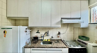 - cozinha com armário planejado, ayrfrar, fogão e